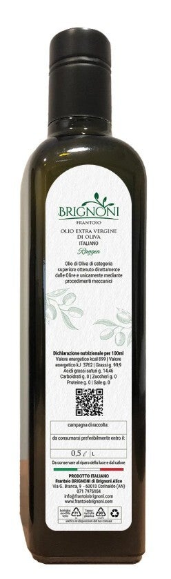 De olijfolie van de raggia olijven is de meest intense van Brignoni die opvalt door zijn krachtige, kruidige fruitigheid met uitgesproken tonen van artisjok en amandel.